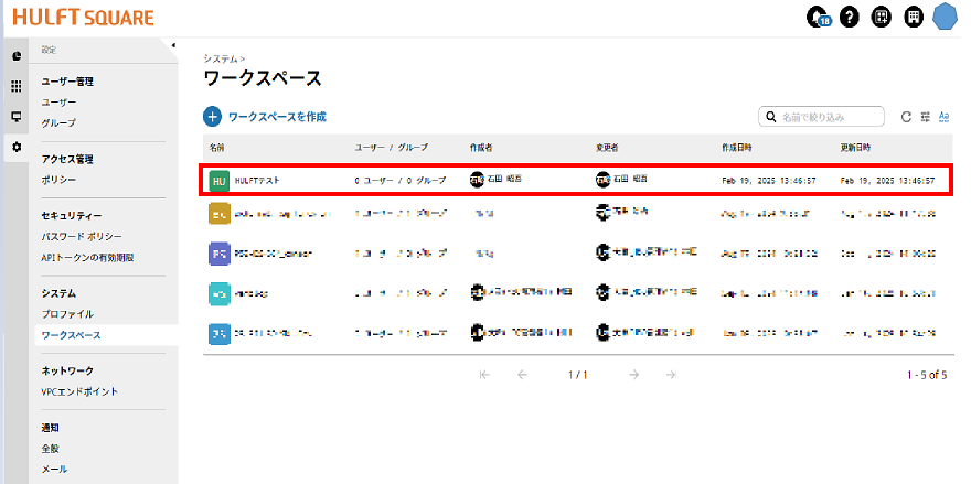 ワークスペースは、他のユーザーまたはグループと設定やデータを共有することができる場所です。