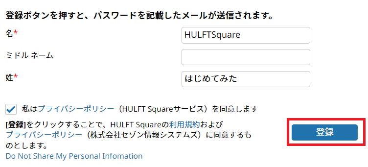 - HULFT Squareにユーザー登録する。
