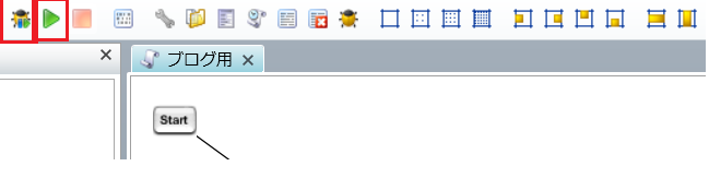 7.赤枠内のアイコン(左側:テスト実行/右側:通常実行)をクリックし、スクリプトを実行する。