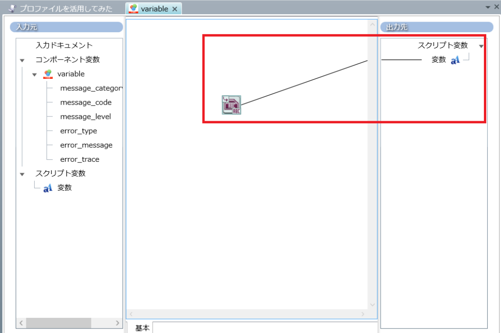 7. 設定完了したアイコンを出力先(プロパティ右側)のスクリプト変数に接続します。