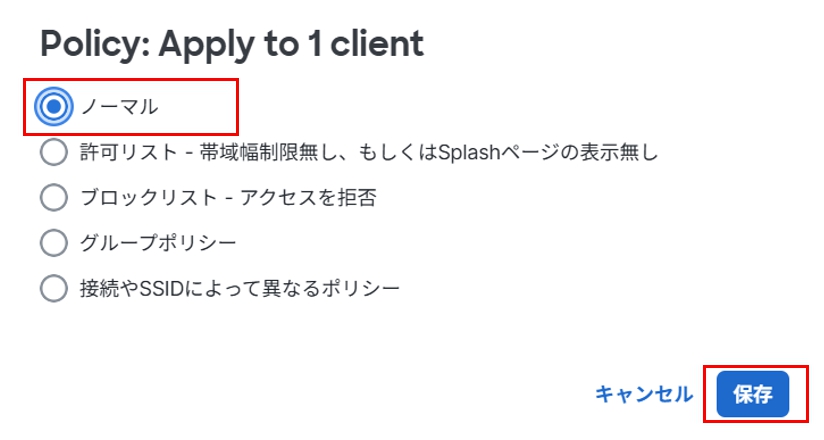 事象発生時の解決策として、接続不可端末のポリシーを一度「ノーマル」に変更し、MAC アドレス登録とグループポリシーの再適用を行う手順をご紹介します。