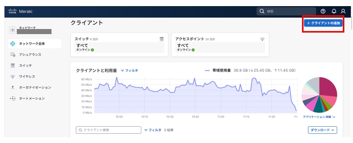 無線接続をする際、MACアドレスによるアクセス制限をするため、MerakiダッシュボードにMACアドレスを登録