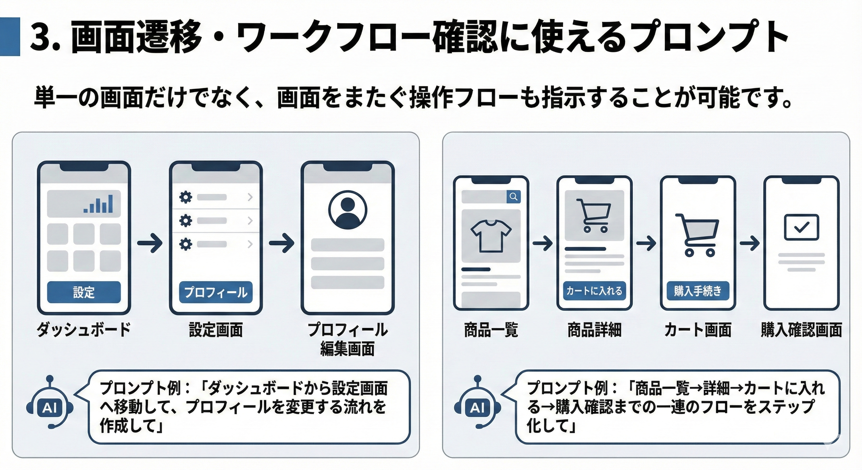 3. 画面遷移・ワークフロー確認に使えるプロンプト